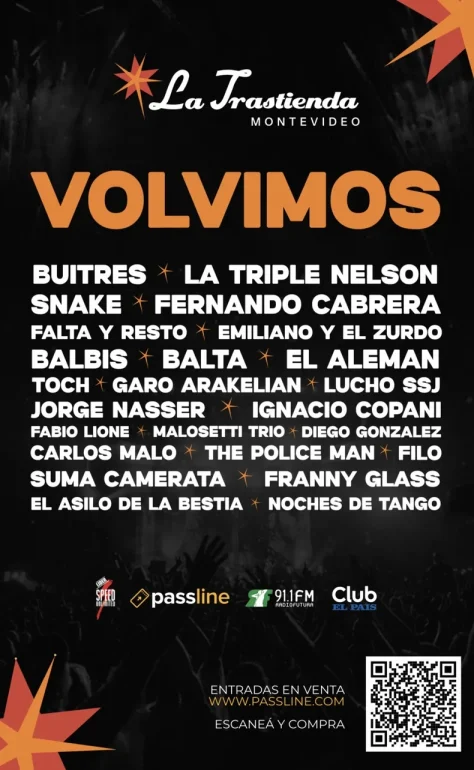 Buitres, La Triple Nelson, Fernando Cabrera, Alejandro Balbis, Falta y Resto, Emiliano y El Zurdo, Jorge Nasser, Franny Glass y Malosetti Trio, serán algunos de los artistas y bandas confirmadas que estarán en la sala montevideana.